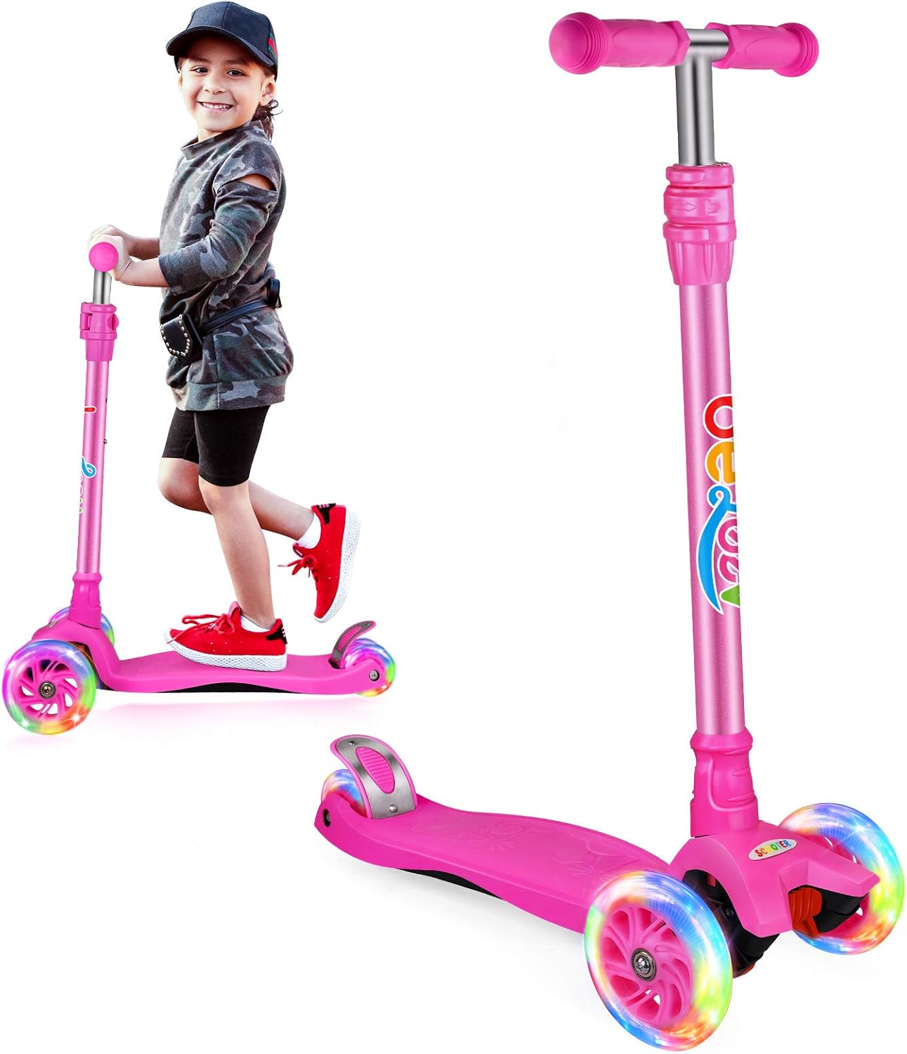 Amazon Co Jp Megawheels 3 Wheeled Scooter For Kids Pu Wheel With Led Lights Adjustable Lean To Steer Handlebar Ride With Brake For Toddlers Boys Girls Ages 2 12 Years Old Color Pink おもちゃ